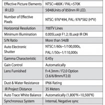 • Pixel number: NTSC=480K / PAL=570K (Ultra High Resolution.